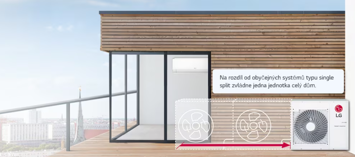Multisplitové řešení je ideální tam, kde není prostor pro více venkovních jednotek nebo kde je kladen důraz na čistý vzhled fasády. Systém zajišťuje rovnoměrné chlazení i vytápění celého objektu při zachování vysoké energetické účinnosti a tichého provozu.